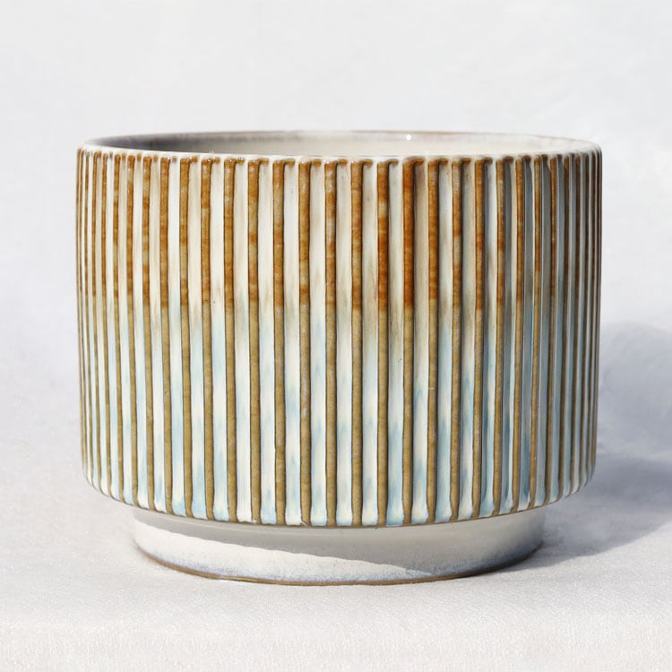 鉢カバー(花器) 釉薬陶器製インテリアポット ノルダ(NORDA) ブラウン(茶) φ15cm×H1...