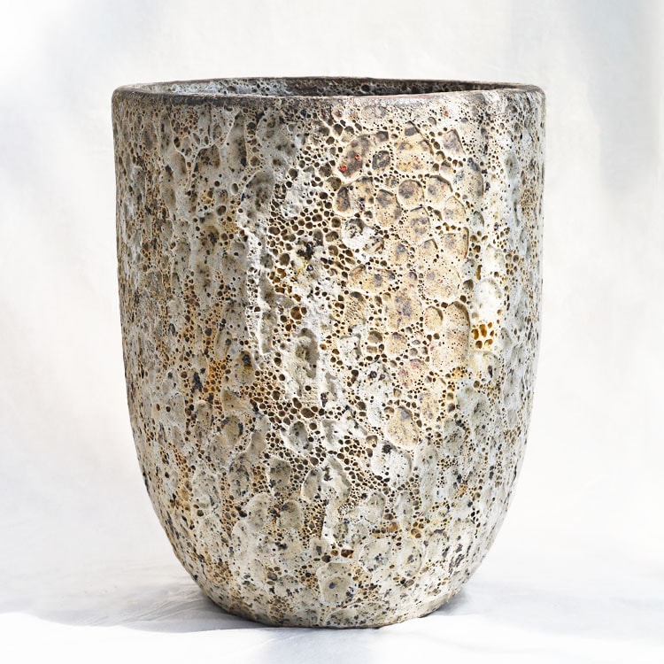 植木鉢 釉薬陶器製 大型 おしゃれ ボルカーノ トールラウンド クリーム(ベージュ)φ33cm×H4...