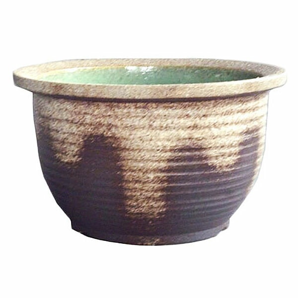 睡蓮鉢(水鉢)信楽焼 NEW 灰釉 ひねり深 φ31cm×H19cm(10号)【送料E】...