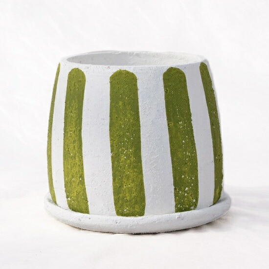 植木鉢 釉薬陶器製 インテリアポット ラウンド グリーンストライプ 緑 / 6号 6寸・φ17.5×...